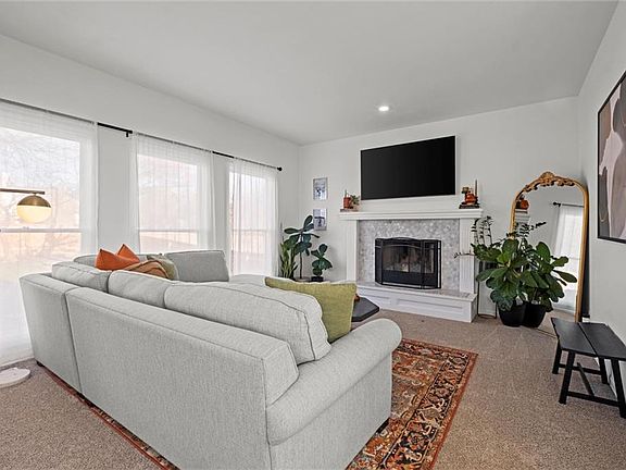 This beautifully updated 2 story home with modern/neutral paint colors has a vaulted entry, with gleaming hardwood floors, BRAND NEW carpet and lots of windows for natural light. The open-concept layout seamlessly connects the living, dining, and kitchen areas, creating an inviting space for relaxation and entertainment. Enjoy the spacious living room with tile surround fireplace opening to a large, eat-in kitchen with oversized island, granite counter tops, painted cabinets and updated tile backsplash. It's is a chefs delight with all of the stainless steel appliances (including a gas stove) staying with the home.. plus a pantry! Utility room and 1/2 bath are accessibly located on the main level. Needing a home office, play room, formal dining or living space? This home has a "bonus room" on the main level to use as you wish! Venture upstairs where all 4 bedrooms are conveniently located, along with a newly remodeled full bath with double vanity and tile surround shower over tub. The master suite and bath are stunning! Check out the dreamy soaker tub, tile shower and double vanity opening to a roomy walk-in closet. The large backyard, with BRAND NEW privacy fence, cozy fire pit and patio is perfect for entertaining... and it backs to green space for added privacy. Welcome to your new home!