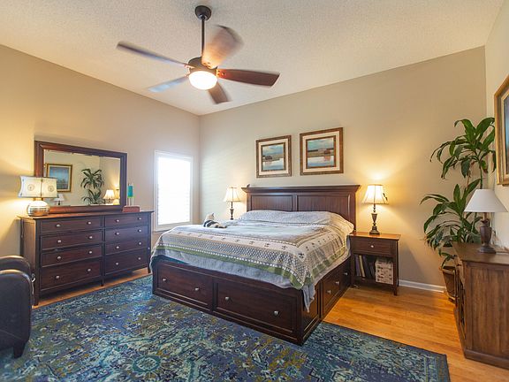 Beautiful spacious 3 bedroom 2 bath home with large fenced in back yard overlooking a lake. Wood floors . Stainless appliances . Fireplace. Formal living room , eat in kitchens and breakfast bar. Master suite has walk in closets , his and her sinks and garden tub with separate shower. Community has clubhouse and pool .