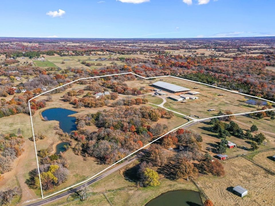 This beautiful ranch features 4,557 sq ft of cozy living space with 4 bedroom, 2.5 bathroom, 2 dining areas, office or media room, eat in kitchen and windows throughout to see all around the 42 acres. Above the garage is a 1 bedroom, 1 Bath with living room apartment for a ranch hand or teenager. This magnificent ranch has a newly constructed 140'x330' covered arena with all around footing as well 50' wooden round pen, 3 barns with 35 stalls with a Mare Motel, covered 8 horse walker, paddocks and pastures with run ins, 2 ponds and conveniently located storage for hay and shavings located right between barns. Schedule your showing today!