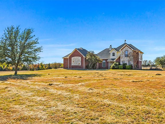 Follow the beautiful tree-lined lane to this one-of-a-kind spacious home on 10 acres, truly a secluded country estate close to Van Alstyne within the Van Alstyne school district. Bring your horses! Backyard includes patio, extra-large gazebo and outdoor pool, all perfect for entertaining and making lasting family memories! Also, a separate 40x50 outbuilding, a workshop with drive-through access. Perfect for RV and boat storage, additional cars, etc. You'll enjoy the spacious feeling in each room with high ceilings, neutral decor and an interesting floor plan! Two bedrooms up and two on the main floor. Office with beautiful palladium window overlooking front yard. Primary bedroom has walk out to the pool area and beautiful ensuite bath. Game room upstairs has a game closet with french doors. laundry room is ultra-spacious with beautiful built-in cabinetry, corner sink and lots of extra room! Ceilings fans throughout and lots of storage. This home has an abundance of natural light through windows overlooking the private 10 acres. This home offers endless possibilities for you to make it your own. You're going to love it!