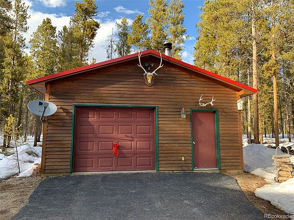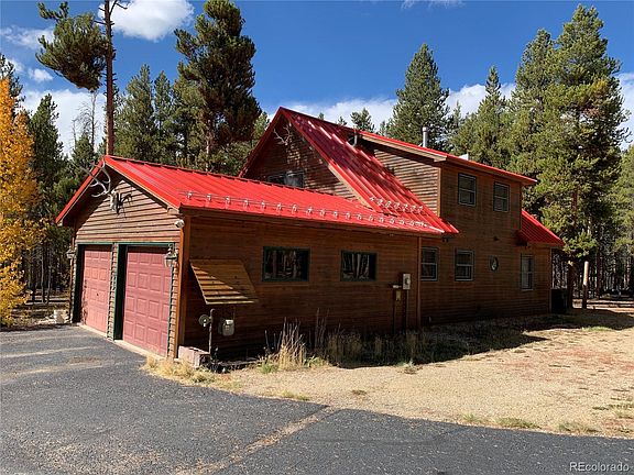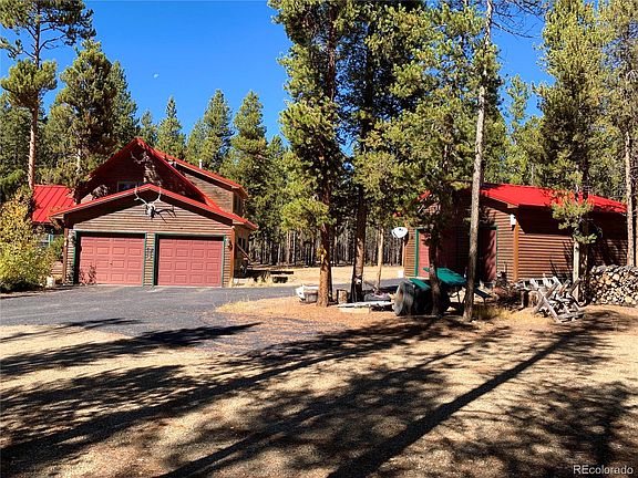 This charming 3BR + office, 2.5BA property offers A+ privacy on 1.5 wooded acres in the beautiful Turquoise Lake Estates area. An attached 2 car garage allows direct entry into the home. A detached 3rd car garage offers a 22' x 22' workshop space with a wood burning stove (perfect for tuning skis, wood working, an art studio, or vehicle and toy storage). The home has gas heat, a gas fireplace, views of the woods from every room, sunlight throughout, and a large kitchen - dining area. The large main bedroom offers a spacious walk-in closet and the main bathroom has a jet tub. Other features include: high-speed internet, natural gas grill hook-up, and built-in home speakers. Enjoy extra storage in the unfinished space below the home. An RV can circle around the detached garage without having to back up to exit the property and there is ample space for RV and trailer parking. Security system included. Septic was inspected on 10-16 and TOT approval certificate was issued. New red metal roof in 2019. Antlers attached to the exterior of the home and extra building are included. No HOA fees. This is a unique chance to own 2 miles from Downtown with the feeling of country living. All original carpet has been removed. New wood laminate has been installed on main level and in bathrooms and new carpet is being installed on the stairs and in the bedrooms. Hard wood flooring in kitchen / dining area will not be replaced. Come make this spacious, peaceful property your happy place in the wonderful Leadville area.