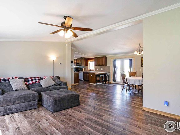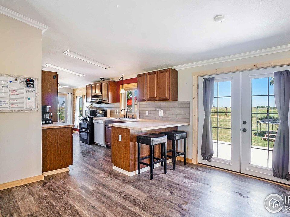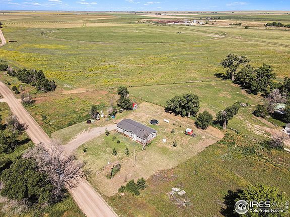 Price Improvement! This 3 bedroom, 2 bathroom home has been recently updated with new flooring, paint, kitchen counters, farm sink, master bathroom, roof, siding, windows and more! All of this on 2.6 acres for 385K! The open plan, large windows and French doors that open onto the concrete back patio, allow for tons of natural light and an airy feel. Enjoy privacy and country living plus you can work from home with Fiber Optic lightening fast speeds and then go play at Jackson Lake State Park & Reservoir (10 min drive)! Small town living with easy Hwy access (4 miles off of Hwy 34) to Fort Morgan, Greeley or Denver! Did we mention the views?! On clear days, the Rocky Mountains are on full display! Plenty of room to add a shop and for horses! Property is fenced on the North and West property lines. All three wall mounted t.v's stay, also included are all kitchen appliances plus washer & dryer. **The map shows a railroad that runs behind the property. This railroad line does not exist anymore; there are no railroad tracks that run on the property.
