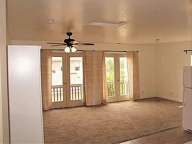 We have a studio available in Rio Homes. This would be for a lease through July 2025 or July 2026, whichever option is best for you. The studio sits above the garage and has NO adjoining walls. The studio is 550 sqft and has two sets of French doors that open to a standing balcony and provide a ton of light. The studio includes one space in the two car garage which is shared with the main unit. There is direct and private access to the studio via a stairway from the garage to the studio. The studio includes a full kitchen with a dishwasher, two ceiling fans in the living area - only one is shown in the photos but since was updated with two matching ceiling fans and blinds have been added to the four French doors - and a bathroom with a large shower. Unfortunately there are no laundry facilities on site. A pet will be considered although I do have some limitations based on our insurance. Utilities not included.
