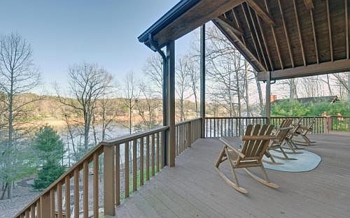 Lake Nottely Mountain home on deep water! 4 bedroom, 3.5 bath. Covered dock (negotiable). Lots of porch and deck space, 4 fireplaces, across the road from US forest service, a fabulous lake home