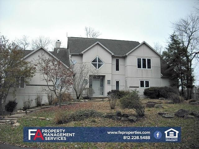 Large contemporary home in Lost Lake. Knock out wooded setting with great views. This home features a impressive foyer, huge great room open to formal dining and bright sunny kitchen and sunroom. Walls of windows offer plenty of light and views. Extra large first floor master with luxurious bath and two huge walk in closets. Upstairs is a bonus room overlooking the great room, 3 bedrooms and a full bath. Two car garage plus a huge RV garage. Beautiful in-ground pool. Elevator and storage galore. No pets and No smoking. Schools: Chandler, Castle North and Castle. Average Vectren $147.00. Call 812-228-5488 to schedule an appointment to view 1299 Huner Blvd!! No pets and No smoking.