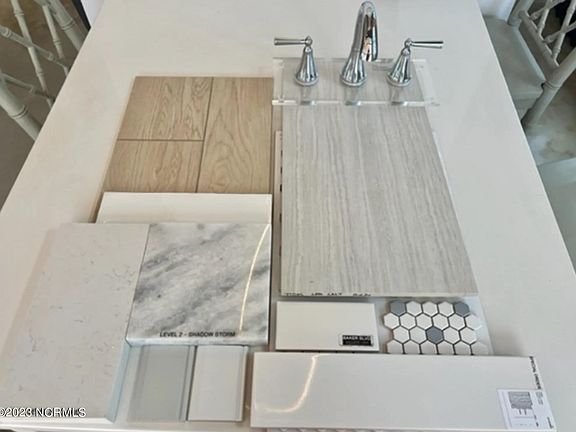 Guest Baths Tile: light blue/gray/white hexagon dot