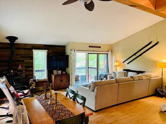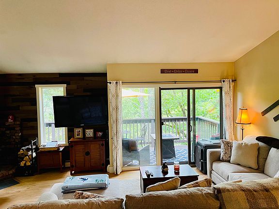 Open and airy townhouse end-unit with water views! Kitchen features granite countertops, stainless steel appliances, tile backsplash and vaulted ceilings with beams. Living room/dining area with wood stove. Primary suite features a sliding glass door with walk-in closet and washer/dryer. Large deck overlooking the Ottaquechee River. Walking trails, Quechee Gorge, and shops and restaurants are all within walking distance. Year round fun with golf, skiing, swimming and so much more just minutes away. Agents: please see non public remarks.