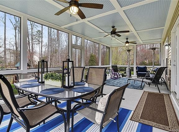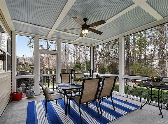 Beautiful move in ready home in highly sought after Skybrook North Villages! Huge screened porch with large private fenced lot backs to woods and creek. 5BR/3BA +bonus with open floorplan. Hardwoods throughout 1st floor. Two-story foyer. Large cherry kitchen has an island, granite countertops, stainless steel appliances, gas range, tile backsplash, desk, & walk-in pantry. First floor guest room has a full bath. Formal living room could be used as a study. Formal dining w/tray ceiling, wainscoting, & butlers pantry. Upper level master suite w/tray ceiling, breakfast bar, his/hers closets, oversized shower & tub, dual vanities, & tile floors. Faces west. Excellent schools! Must see!