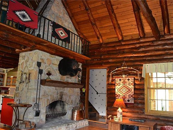 Welcome to this exquisite 3 bedroom 2 full baths impeccable custom built log cabin. Situated on a 3.9 acre quiet home site very private, serenity, country natural tranquil setting. 3 detached car garage with loft for storage. In ground 16X32 pool/automatic cover, stone pavers, gazebo & storage shed for pool equipment. 2 stall barn with loft. 8 X 1/2 X 20' front porch, 10X16' side porch. Sunken great room, graced with cathedral ceiling, stone fireplace, log walls, hardwood floors. Eat In exquisite kitchen offers Viking range/convection oven & infrared broiler & hood, upper glass doors cabinets/bottom bead board, side by side refrigerator, wood counter tops. Sunken sun room/cathedral ceiling, light & fan, stone heated floor, 9 Marvin windows, 5 sky lights, door to exit. First floor bath with walk in shower, warm chestnut cabinets, vessel sink, ceramic tile floors. Master bedroom/cathedral ceilings with light & fan, large walk in closet. Warm & charming bedroom has cathedral ceiling light & fan, railing overlooks the great room. Game room offers used brick fireplace, dark green w/w carpet, mural has numerous airplanes, cherry wood paneling on bottom. Explore the multi purpose room, crystal light fixture, glass tile w/w dark green, 2 double closets for storage. Attractive full bath/royal blue walls on top, white bead board bottom, marble floors, walk in shower. Utility room houses tankless water holder, large storage room (under the hot tub), Beverage-Air double barrel cooler---negotiable.