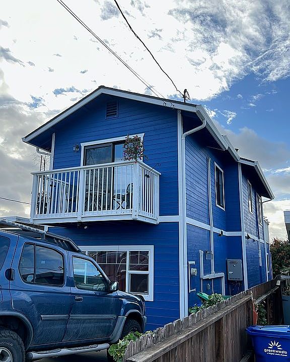 Approved ADU plans transferrable with sale! The approved ADU plans are to convert the attached garage to an attached individual dwelling. Live in one and rent the other at this great Seaside home in a wonderful neighborhood. Charming Seaside home with beautiful ocean views in the master bedroom. On the ground level of the home enter in to an open living, dining, kitchen and half bathroom equipped with high ceilings, wood burning fireplace and wood floors. Upstairs are two oversized master bedrooms each with en suite bathrooms and private decks.