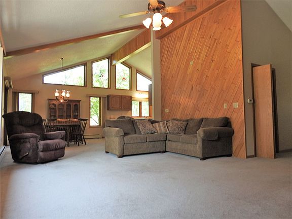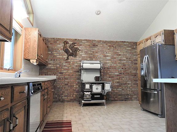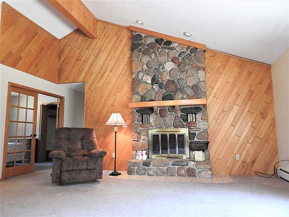 Park like setting on nearly 4 acres with fenced garden area and mature trees. Open concept with large kitchen to include an antique wood stove that really works!!! Vaulted ceilings with stone fireplace, pine tongue and groove sun room with skylights facing the rear of the house. Private master bedroom deck with walk-in closet. Over sized 2 car attached garage, first floor laundry and open basement ready to complete to your liking.