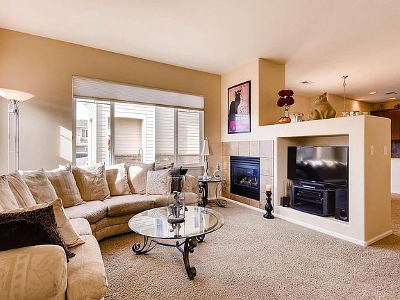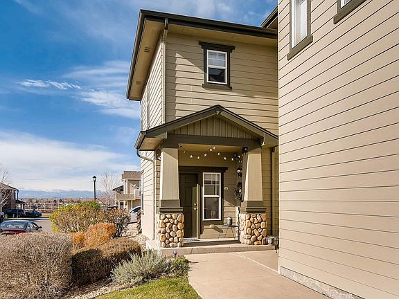 Don't miss this opportunity to live and play at Thorncreek Village in this immaculate 2-story condo with gorgeous mountain views! A gas fireplace and entertainment nook accent the inviting living room that is flooded with natural light. The open kitchen plan features granite counters, 42" cabinets, hardwood flooring and stainless appliances. A half bathroom and large laundry room complete the main level and lead to an attached one car garage. Cozy up to the 3-sided fireplace in the master suite with sitting area, 2 closets and a full bathroom. Enjoy entertaining and relaxing outside in the fenced backyard maintained by the HOA. Conveniently located near I-25, open space, shopping, entertainment and public transportation.
