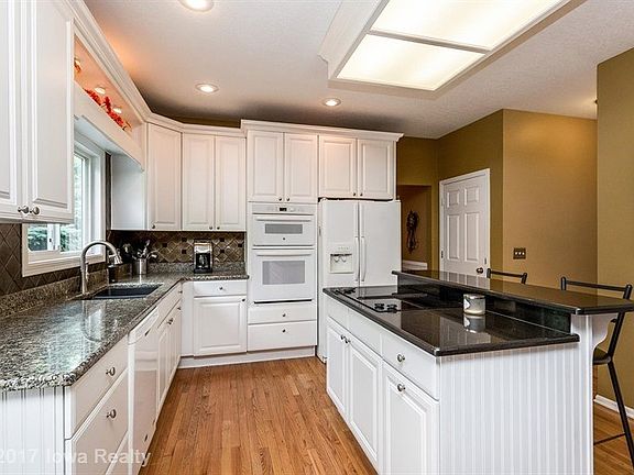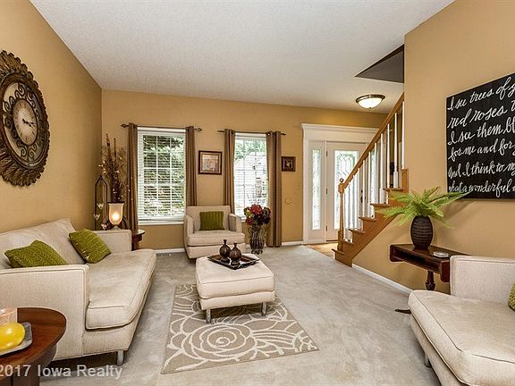 Wow! Convenient location for active living, peaceful setting with mature trees, great spaces for entertainment and family gatherings plus eye-catching price and lower Clive taxes! Don't miss this well-maintained, updated home that includes over 3600 finished square feet of living, a home office with built-ins, 4 bedrooms, 2 fabulous family rooms, plus enlarged, no-maintenance deck overlooking the treed back yard! Updated kitchen with granite counters, bathrooms, new windows and siding. Fabulous finished basement is complete with wet bar, huge family room, game room and bath. Just move in and enjoy! Lovely landscaping and brick front enhances the curb appeal. Come see the value, quality, and easy living in this terrific home and neighborhood. Make it yours!