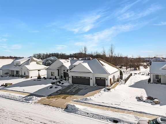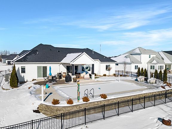 This modern, like-new home in the sought-after Leo school district boasts luxurious features like a stunning inground pool, an open-concept kitchen with high-end finishes, statement light fixtures, and a thoughtfully designed layout for optimal space utilization. Built by Maggos, this custom home has over 4,000 finished square feet with 4 bedrooms, 4 full and one half bath on a daylight basement. The welcoming foyer greets you while the great room’s wall of windows and gas log fireplace add warmth and charm. The open kitchen is perfect for entertaining, with an oversized island, gorgeous backsplash, gas range, and an eat-in dining area that includes a coffee/beverage center. Plus a dreamy walk-in pantry and oversized laundry room offers plenty of storage. Enjoy the privacy of a split bedroom floor plan with all bedrooms offering generous closet space. The primary suite features a modern ensuite bathroom with dual vanities, stunning tile shower and walk-in closet. The flexible lower level features an open entertaining area with west bar, the fourth bedroom and third full bath along with workout room or potential fifth bedroom with addition of a closet. The three-car garage, extensive storage in lower level and backyard oasis with private access to the primary suite are standout features for convenience and privacy. Every detail has been carefully planned in this home - all you have to do is move right in!
