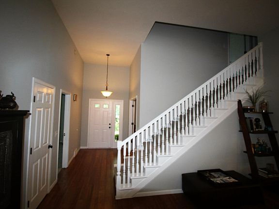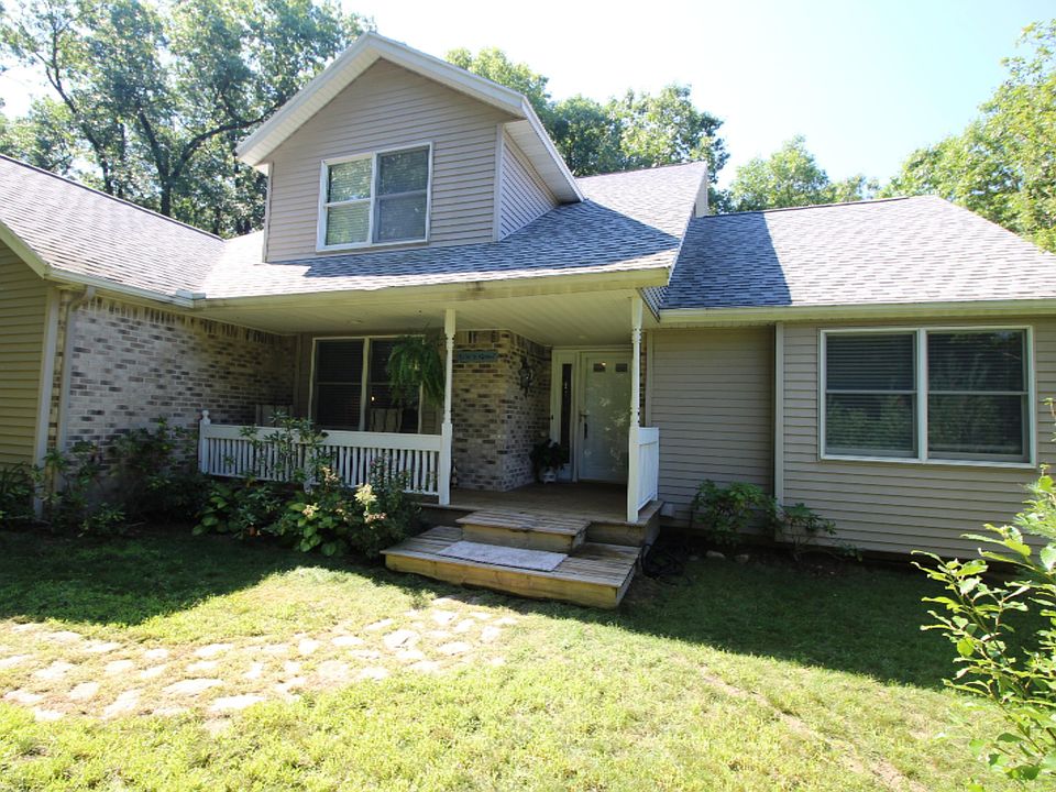 Private gorgeous wooded setting! 2 acres w/natural gas and easy access. Shows great, recently renovated w/new bambo flooring & carpet, kitchen w/tile backsplash, granite & new appliances & walk in pantry. 3 yr new roof (stripped) New deck & new interior doors. Awesome floor plan w/high ceilings and main floor mbr suite walk in closet & private bath w/tile floor, double sinks, 2 person whirlpool & separate shower, flex room w/french doors. Front covered porch, 2 way gas fireplace between dining area & great room. Large garage has hot&cold water, drain & walk up attic. Room desc: Foyer, flex room(lr,fdr,office) gr, mbr suite, kit, da, mudroom, 1/2 ba, mfu up: 2 br, ba dn: fr, rr, 2 br, ba, storage, mechanics