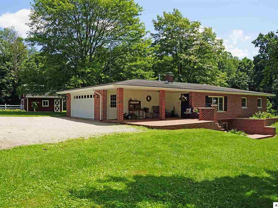 This property has the WOW factor, just an amazing brick home sitting on 6.987 acres and featuring over 2000 sq ft of living space. Enjoy the beautiful view off the front brick patio, walk through the front door into the living with cherry hardwood floors, large kitchen/dining room combo, full bath, 2 bedrooms and mud room. Full finished walk-out lower level with living room, large eat-in kitchen, 2 bedrooms, and full bath. 2 car attached garage, utility shed with electric, play area, and fenced pastures. This is a home not to miss.