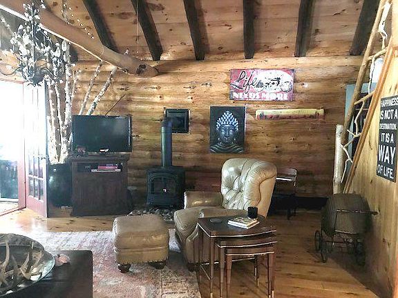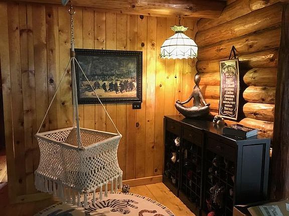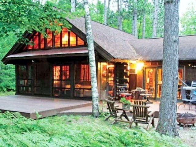 Charming partial log and stick built 2 BR 2 BA home in a very private setting. You can enjoy water views over State property and a path from the home leads to the water on this 10 Lake Chain over the State lake frontage - No piers allowed on State land. Many quality updates have been done inside & out. The 2 bedrooms are on the main level with the master having sliding doors to the back lower deck. The living area has a cozy gas free-standing fireplace to enjoy in the winter or to take off the chill in the cooler Fall days. The kitchen and dining are open to the living room & a staircase in the living room leads to a loft sleeping area. There is a 2nd loft play area on the other side of the living room. The newly finished 3 Season Sun Porch makes a great office area and is just a great place to relax and enjoy the wooded view to the lake over the State Land. The home has a new metal roof. Relax in the Summer in the large hot tub on the deck. 2 car garage & large storage shed.