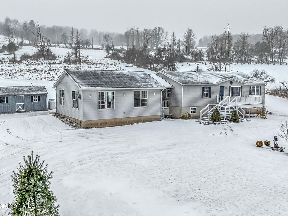 This beautiful modular ranch homes comes beautifully equipped with newer appliances, Pa stone countertop, Generator and plenty of space inside with 3.59 acres outside. Family room has propane stove and plenty of space to handle your holiday gatherings and parties all year round. A truly must see home with 3 bedrooms, 2 baths on main level and 2 more bedrooms, bathroom & great room w/propane stove on lower level. Shed , views and great location just outside of town. No OGM transfer. Part of larger piece being subdivided. See this one sooner than later.