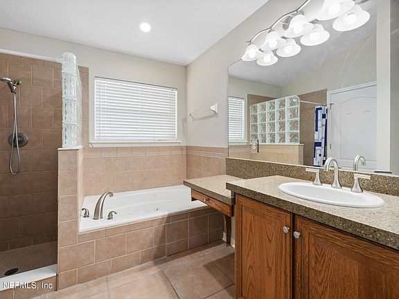 Just Listed: NO CDD & Low HOA & Walking Distance to A-RATED Chet's Creek Elementary! Beautiful Home on a CUL-De-SAC w ALL the Right Upgrades - Fresh Int/Ext Paint High Ceilings, 1yr Old HVAC & Newer Water Heater! Beautiful Wood Look Tile & TONS of Windows! $25K in Recent Improvements! Spacious Formal Dining Space. DBL Doors to Private Office/Flex Rm w Classy Wainscoting. Formal Dining Room & Open & Inviting Living Area w Plenty of Natural Light! Gorgeous Kitchen w Large Island/Breakfast Bar, Warm Wood Cabinetry & Attractive Appliances- Brand New Range! Breakfast Nook w Stunning Tile Accents! Relaxing Owners Bedroom w NEW Beautiful LVP Floors & Sliding Doors to The Lovely fully fenced in Backyard! En Suite w GARDEN TUB & Separate Shower! Step Outside Onto the HUGE Covered Lanai w NEW Pavers - Great Spot to Enjoy the Gorgeous Florida Weather! Fully Fenced Backyard-Tons of Space to Play! Quiet Neighborhood w Pool & Playground! Close to The Beach, Shopping & Dining & St Johns Town Center!