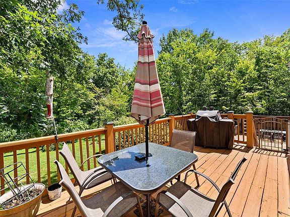 Country estate nestled on a private 3 acre wooded cul-de-sac lot, this wonderful well-loved home awaits! Traditional floor plan features formal living & dining rooms, spacious family room w/wood burning fireplace, kitchen w/center island breakfast bar & breakfast room w/access to the sunroom & deck overlooking the private park-like back yard! Upstairs is a huge primary suite with gorgeous views & luxury bath with dual vanities, soaking tub and separate shower; 3 additional bedrooms & a full bath. Finished LL has its own separate mailing address & a kitchenette, family room, bedroom, full bath, laundry & sunroom and even a private entrance! Great for multi-generational living situations. Enjoy an above ground pool w/wrap around deck in your private backyard. Upgrades include roof, gutters, downspouts in 2012, Zoned HVAC w/AC unit in attic for upper level. 32x48 detached garage w/concrete floor & 220 electric & workshop area. Access to stocked 13 acre lake for residents & guests only! Additional Rooms: Sun Room