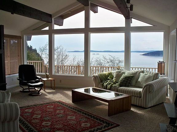 Step through a grove of ancient cedars and into this 4000+ sq ft jaw dropping westerly view home on Sunset Lane. With 4 bedrooms, master on main and 3.75 baths, a lower level kitchen, office w/separate entry and 3/4 bath, sunroom with hot tub and garden window, gourmet kitchen geared for baking, prow windows, basalt stone fireplace, 2 additional rooms for hobbies, ramp to new cedar deck, chair lift at entry stairs, all recently updated and painted.
