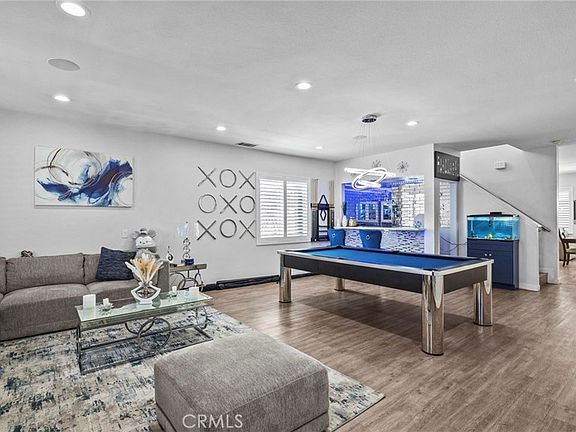 Step inside to discover an inviting open floor plan with high ceilings, stylish finishes, and abundant natural light. Downstairs is a beautiful built in bar with surround sound music built in speaker system. The spacious living areas are perfect for both relaxing and entertaining, while the gourmet kitchen boasts modern appliances, a large island, and plenty of cabinet space. The primary suite is a true retreat, complete with a spa-like en-suite bathroom and a generous walk-in closet. Soft water system is also included throughout home. Four additional bedrooms offer flexibility and comfort, and the extra permitted bedroom and bathroom add even more value to this already exceptional home. Outside, you’ll find your own private oasis. Enjoy sunny days lounging by the sparkling salt water pool or unwind in the soothing spa. The beautifully landscaped backyard provides a serene setting for outdoor gatherings and relaxation. Located in a family-friendly neighborhood, this home is just minutes away from top-rated local schools, shopping centers, and dining options. With easy access to 15 freeway, commuting and exploring the area is a breeze.