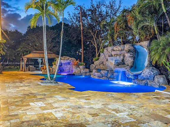 Remarkable Estate home w/everything you desire in one location! Step inside this gorgeous sprawling home with the amenities you deserve! Perfectly situated on a cul-de-sac of nearly 2 acres w/tropical privacy landscaping, this unique home is the ultimate in entertainment for family & friends. New roof, entire pool makeover including resurfacing & new pool pumps, 2 hot tubs & a waterside & lighting controlled by your phone; plus a large sauna with a stunning view. Coupled with a fully equipped large summer kitchen, outdoor covered entertainment area w/TV!Gorgeous kitchen w/center island & butlers pantry, step down full bar, private office, cabana bath & much more! Full house generator, 1000 gallon propane tank. Alarm. All impact windows & doors! New Paint throughout pics t/b updated soon!