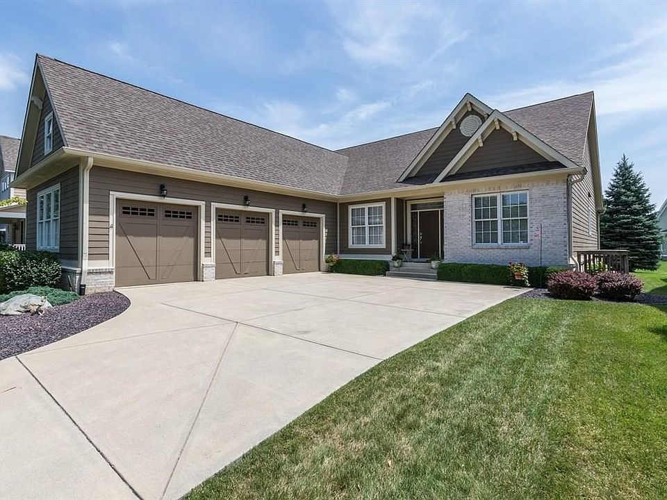Beautiful Executive Homes custom 4BR, 3.5BA ranch with fin Bsmt. Gourmet Kit w/white cabinetry, granite counter tops, center island, lg pantry, all SS App's & W/D stays. New fresh paint. Open floorplan, great room w/gas FP! Spacious master suite w/tray ceiling, spa bath & WIC. 2 BR's on main & 2 BR's below. Lower level also offers a Family Room, wet bar & full bath. Trex deck, paver patio, addt'l trees, 3 car gar w/epoxy floors. Attic access could be loft.
