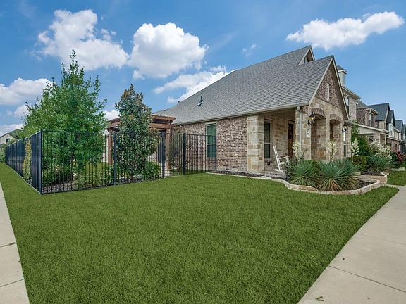 Welcome to Edgewood Luxury living in Frisco. Located in the highly sought-after Frisco ISD, this beautifully maintained home sits on a desirable corner lot in the heart of Frisco. Step inside to discover hardwood floors, a spacious open-concept living and dining area and a chef's kitchen designed for entertaining -complete with custom wood cabinetry, large granite island, stainless steel appliances, gas cooktop and double oven. Offers privacy and serenity, featuring a spa-inspired bath with full marble walk-in shower, his & hers vanities and a bright walk-in closet. Additional highlights include quartz countertops in all bathrooms, a large laundry room with built-in cabinetry and surround sound speakers in the living area. Enjoy outdoor living under the cedar pergola overlooking a flat, private backyard with mature holly trees. A rear-entry garage provides extra storage. Community amenities include a pool, playground and over 5 miles of walking trails. Ideally located with easy access to major roads, top rated schools and an abundance of shopping, dining and entertainment options nearby. Washer, Dryer and Refrigerator included.