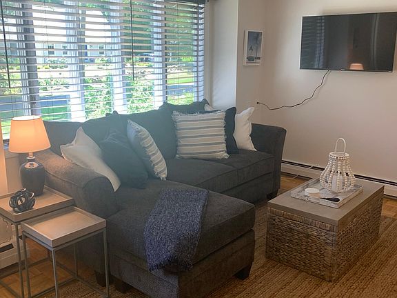 Beautiful, quiet 1 bedroom fully furnished apartment in shoreline community of Guilford CT, located close to Rt 95 for easy access for travel to many hospitals, including Yale, St. Raphael's, Bridgeport, Middlesex, and Branford Hospice. Perfect for traveling nurses, short term rental, academic year rental. 3-month minimum lease required. Home is located across the street from Bishops Orchards, with multiple hiking trails accessible at end of the street. We are 1 mile from the historic Guilford Green and many shops and restaurants, and close to several local beaches as well as Hammonasset State Park. This apartment has a fully stocked kitchen with stove, full size refrigerator, dishwasher, microwave, all brand new furniture including new queen mattress, air conditioning, Wi-Fi, and in unit full size washer and dryer. There is a private entrance to the apt, as well as a private back deck to relax on after a long work day (or night!). Off street parking for 1 car. Owners are located on property on other side of duplex, with 1 dog. Sorry no pets or smokers in this rental. Unit is fully furnished, utilities are included. Cleaning fee: non refundable $150 due with payment of security deposit and 1st month's rent. There is a 3 month minimum lease required.
