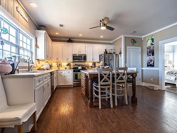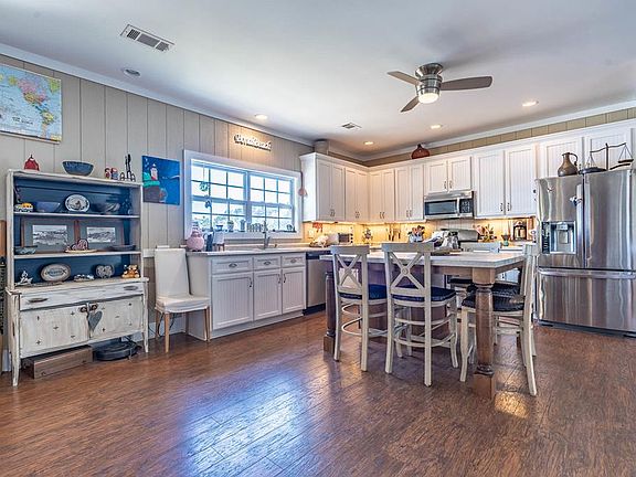 This Lake Sinclair cottage is one of our favorites! Original heart pine ceilings down stairs. Newly added master on main with an office in 2018. Three bedrooms downstairs including nice bunk room with custom made built in bunks. Downstairs has a private den area also! Upstairs, enjoy a huge 17 x 39 entertaining area that flows with an open kitchen and eating area that leads to a large 12x16 deck w/ side extensions for a great view of the lake. This is one of the best views on Lake Sinclair!