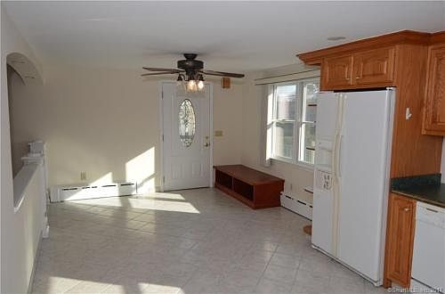 2nd floor apartment recently updated in 2007 and 2017 with new appliances, and with washer and dryer. 2 Bedrooms, 1 bath, eat in kitchen with tile floor, hardwood floors, recessed lights, new window treatments, 2 off street parking spaces, trash, snow and grounds included.. Tenant has to shovel stairs. Private lane off West Putnam Ave. No pets please.