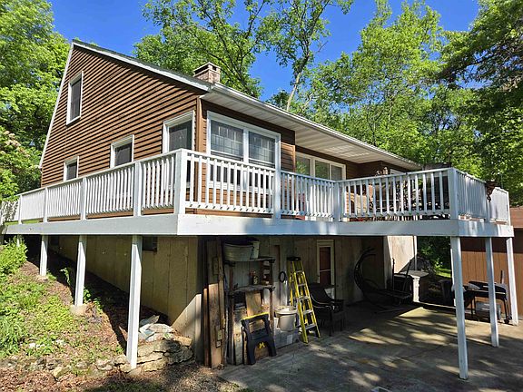 Cottage close to the lake in wooded President section of Apple Canyon Lake. This is an adorable two bedroom, two bath home in the woods with a loft for additional space. Nice level yard for outdoor use and excellent deck overlooking the woods. Large shed for storage. Not listed as a lake view, however the lake can be seen through the trees. Full unfinished basement for future living space or work/storage space. Covenants & restrictions apply. Annual dues & fees apply.