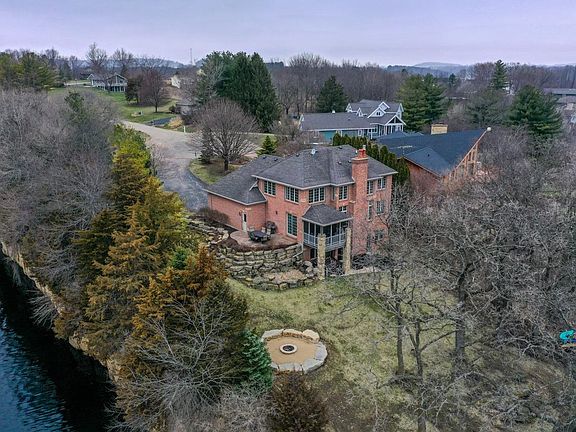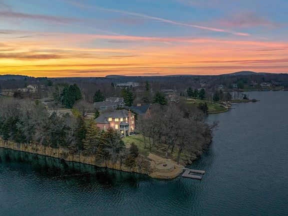 This iconic lakefront executive style home sits in a prime location overlooking Apple Canyon Lake and within walking distance to Nixon Beach. The all brick and stone exterior has new landscape limestone firepit overlooking the lake and all new stone staircase leading to a second patio area. This home has four bedrooms, 3.5 baths and a three car garage. The cathedral living room has a gorgeous floor to ceiling wood burning stone fireplace, and every window boasts a view of the lake. The open floor plan allows awesome entertaining as the kitchen, dining and living are open to each other. The three seasons screened porch is just a few steps from the dining room and also overlooks the lake. The home is also nicely situated for permanent residents, with a master bedroom on main level, and recently renovated and enlarged master bath with tile shower and soaking tub. Three more renovated bedrooms are located upstairs that share a bath, as well as bonus space that overlooks the expansive living room, and also has views of the lake below. This home boasts additional entertaining space in the lower level, with recent updates including flooring, gas fireplace, accent wall and installation of a sauna and dry bar. Just steps from the dry bar are patio doors that take you to your large hot tub overlooking the lake. Laundry and storage/utility are also on the lower level. This truly beautiful home is completely move in ready.