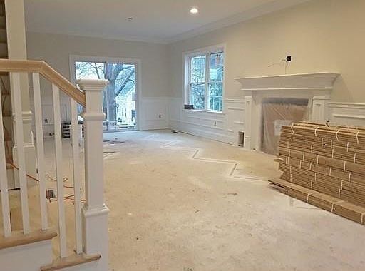 NEW CONSTRUCTION - 3 BD Townhouse, Located in a Neighborhood Close to Town, Transportation, and the Lake.- Large Combination Living room & Dining room with Sliding Door to a Large Deck. ~ Custom woodworking, Crown Molding, and Custom Built Fireplace surround.- Solid Harwood floors throughout, finished on site. - Recessed Lighting - White Shaker style Cabinet Kitchen with Quartz Countertops - Master Bedroom suite has large closet and Porcelain Tile Master Bathroom, both with Hanging Barn Doors. ~ Unfinished Basement with Walk-Out to a large Fenced-in Yard.