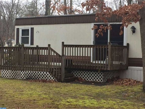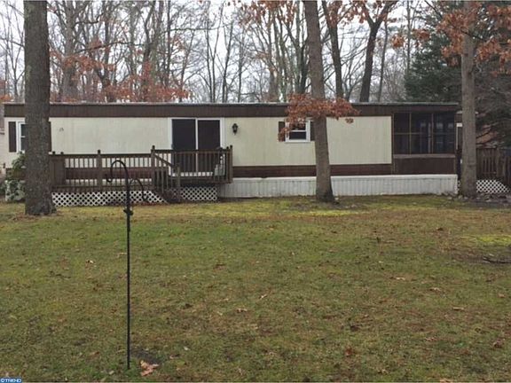 Great community in Shamong Township! This double wide mobile home is move in ready, with 2 bedrooms and 1 bath. Enjoy the screened in front porch, and enter to a huge living room with a bay window, custom blinds, and a built in wall unit. The adjacent kitchen has freshly painted cabinets with new hardware, a pantry, and all appliances included. Next to the kitchen is a family room with a slider out to the 18' x 9' deck. The master bedroom is a great size, with an attached bonus room that can be converted back to a master bathroom, already plumbed, or made into a huge walk in closet. The second bedroom connects to the bathroom, which boasts a new sink, floor and lighting. The laundry area includes built in cabinets for storage. The windows and sliding door are all double paned and energy efficient. New paint throughout the house, as well as updated ceiling fans and lighting fixtures. Included in the sale are the indoor and outdoor security cameras, along with 2 window unit air conditioners. The shed is 12 x 8 and has electric. Driveway fits 3 cars and home is located on a quiet cul de sac. All applicants must be approved by the park management. Make your appointment today, this home will not disappoint!