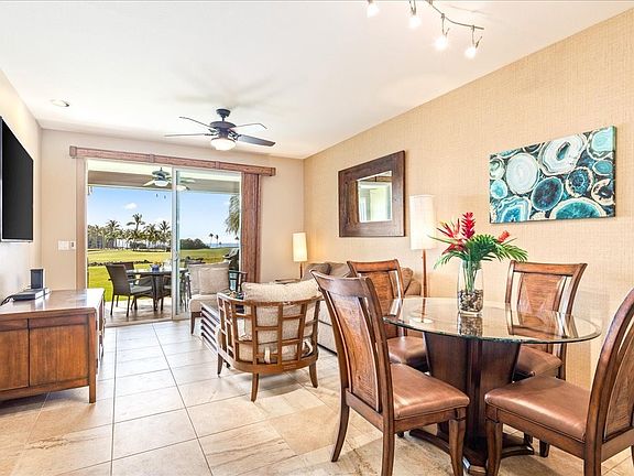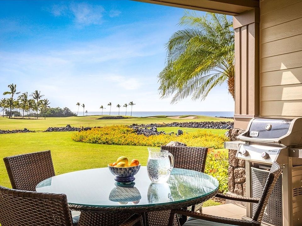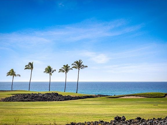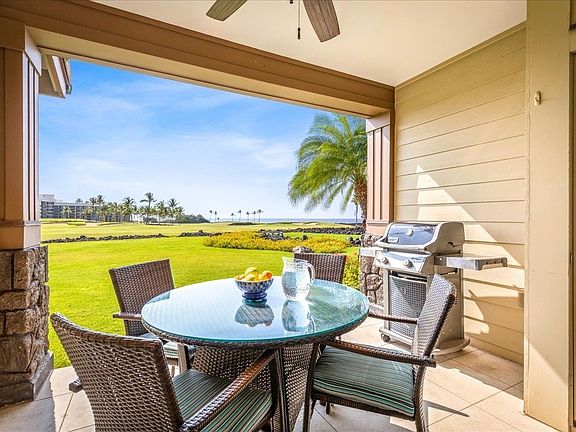 Brilliant oceanfront views of the Pacific, golf course, and sunsets of incomparable splendor are just a few of the many “Wow!” factors waiting for you at Hali’l Kai #12C, a 2 bd./2 bath ground floor single-level villa located on the 7th fairway of the Beach Course. This “Mahana Model” offers 1082 sq. ft. plus a spacious 122 sq. ft. lanai. You’ll fall in love with this unit which includes membership in Hali’i Kai Ocean Club with its tiered saltwater pool, waterfalls and hot tub, oceanfront fitness center, and popular Bar & Grill. As your own tropical oasis and/or investment property with an outstanding rental history, #12C most definitely is a must-see! Building 12 is the most forward of all the golf frontage buildings in Hali’i Kai and just a few hundred yards from the ocean and Ocean Club. The unit is tile-floored throughout and its open gourmet kitchen features newer stainless steel appliances, stunning granite countertops, handsome cabinets, and an attractive easy flow to the dining and living room areas. Both bedrooms are en suite complete with soaking tubs and/or walk-in showers and there is a dedicated laundry room with washer and dryer. The Big Island’s real estate market is hot with no end in sight so if you’ve dreamed of owning a piece of paradise now is the time and Hali’I Kai #12C most assuredly checks all the boxes in the most discerning buyers’ wish list. This unit comes with a trellised carport.