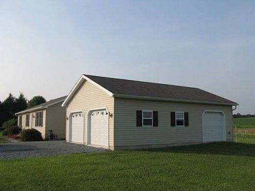 Ranch home sits on 1.44 acres in Tulpehocken School District. This home is in a country setting surrounded by farmland with a view of the mountains. There are 3 bedrooms and 2 full bathrooms. First floor laundry and oversized 3 car attached garage. Garage, breezeway and new siding were added in 2009. Heat options are coal, oil forced hot air and electric baseboard. Home also has central air and partially finished basement. The rooms are very spacious, with room to expand.