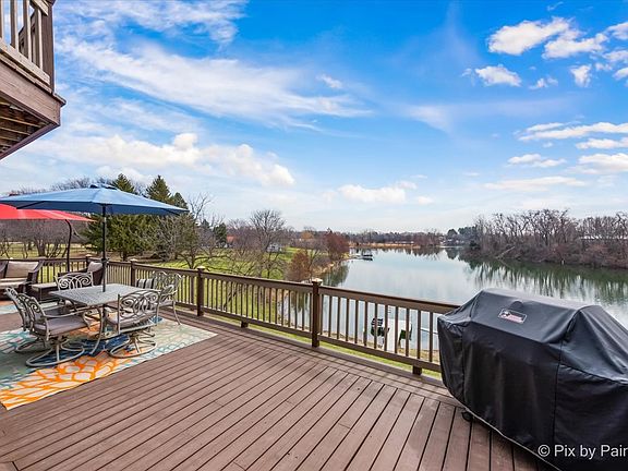 You'll fall in love with this spectacular private 22 acre (20 feet deep) lake location! If you love the outdoors this is the home for you: fishing in the stocked lake, paddle boarding, swimming, sledding and ice skating. Small motor watercraft are permitted along with kayaking and canoeing. Every room is gorgeous including the 2021 remodeled first floor with gourmet kitchen, WOLF range and double oven, dining room with coffee bar, and first floor den. Second floor remodels 2016 & 2018 with large laundry room, walk in closet with safe, expanded bedrooms and remodeled hall bathroom. TWO kitchens and TWO fireplaces, huge deck and patio open to the rolling lawn down to the lake with your private pier. The basement also includes heated floors, a wine cellar, safe room, bedroom with full bath and access to the lower garage with home gym. Geothermal HVAC system, garage heating equipment on-site too. This property is home to your own apple orchard, walnut trees, mulberry trees, with a 1940'2 two-horse barn to store your gardening tools. The current owner has hosted weddings, family football, barbeques and more, making this a one-of-a-kind dream home! Imagine living with all of this just 4.8 miles from I-90!