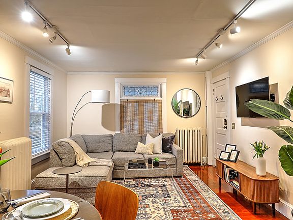 Available starting Sept 1 for academic rental (Sept-May) at $2550 per month, or for year lease at $2900 per month. Rent includes water, sewer and trash. Electricity and gas paid by tenant. Fully furnished downstairs unit with plenty of light and storage space. Privately nestled on one of "Rhode Island's best streets" (per RI Monthly), this newly styled and fully furnished downtown, 2BR 1B, greets you with a covered porch and two designated (and coveted) off-street parking spaces down a private driveway in the very heart of Newport's downtown, but just a block away amid tree lined and manicured garden street. Walk to most of the city by the sea's best restaurants and bars, area attractions, and coffee, book, and antique shops. A private side garden is decorated with stone walkways and flowers. This clean and chic downstairs apartment includes two comfortable bedrooms, a dining area that can dual as a workspace, a cozy living space with a Smart TV, and a sweet bathroom. This light filled home has a good sized kitchen with an eat-in area and great storage throughout. Its location feels close to everything while also being off the beaten path. A block walk to everything and a few minutes walk to eclectic attractions, as well as Bellevue Avenue, Cliff Walk, mansions, and waterfront with a long walk or short ride to the beach. Easy on/off Newport Bridge. Private laundry in-unit and an in-unit large storage area for your use. Little is left to chance in this well-maintained, fully-outfitted and comfortable Newport home. Unit comes with 2 off-street parking spaces. No smoking or disruptive parties on the property.