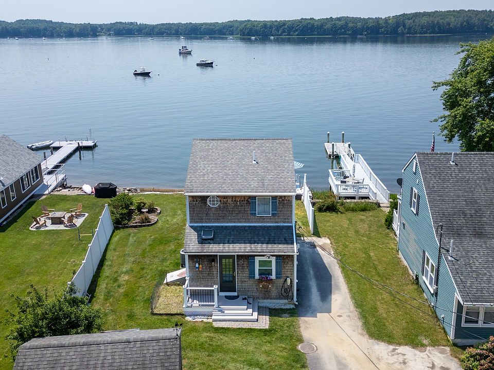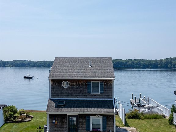 Year-round Great Bay Cottage with private dock, separate mooring and westerly views over the bay that will captivate you all year long. Originally built in 1930 as a camp, it has been transformed into an adorable year-round home with updated bathrooms, updated kitchen, new carpeting and new furnace to name just a few. The primary bedroom faces westerly and has incredible views from the minute you awake. It also has vaulted ceilings with skylights and a private bay-view 18'x3'9" deck to enjoy the view from. Open concept living and dining room with outstanding bay views wherever you look with a sliding door leading you to a private 18'x8' deck with an additional 10'6"x9'10" landing overlooking the gangplank to the 20'x10" floating dock. A great place to fish, swim and boat. Rarely does a home like this in this price point, on the water, become available. Ideal for summer cottage, year round for those seeking smaller square footage with a waterview, or for a boater that just wants to secure his or her spot for their boating needs. Town sewer and water. Available for immediate purchase and occupancy. First showings begin this Friday, June 21st by appointment only. Don't miss out! Schedule a showing today!