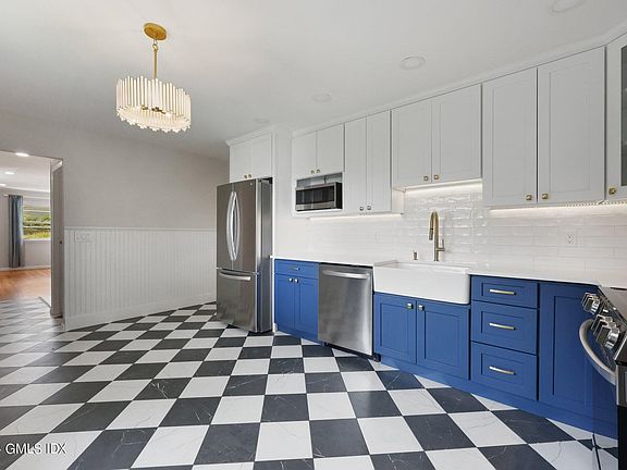 Renovated Ranch located in the desirable Glenville neighborhood of Greenwich. This pristine, move-in ready home features an expansive living room, a gourmet kitchen equipped with Quartz countertops, a farmhouse sink, and LG appliances. The home has central A/C and hardwood floors throughout. The main floor comprises of three generously sized bedrooms with custom closets and a full bathroom. The lower level offers an additional bedroom or office, a full bathroom, a versatile living area, laundry area, and lots of storage space. 1 car attached garage with a high powered EV charger and fenced in back yard. 2025-10-24