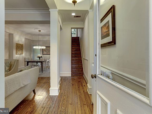 On a quiet little block, nestled between East Capitol Street and North Carolina Avenue SE, this Classic Capitol Hill home is just steps from Lincoln Park, Eastern Market, Trader Joe's, and Metro. The main level boasts 10-foot ceilings with beautiful crown molding, a spacious living room with fireplace, and a dining room with a breathtaking crystal chandelier from Restoration Hardware. The kitchen provides ample granite countertop workspace, and leads, through French doors, to a gorgeous patio designed by the reputable Oldetowne Landscape Architecture firm. With bluestone cut from the same piece for consistency in color and contour, and a brilliantly designed solution for accessing the basement while maximizing space and comfort, you won't want to miss this special backyard oasis in the city. The second level offers three ample bedrooms, including the morning-sun-filled, east-facing master that comes complete with a walk-in closet and plenty of space for a king-sized bed. Finally, the basement alleviates storage needs in a city that is so often short on storage. This home is an absolute must-see!