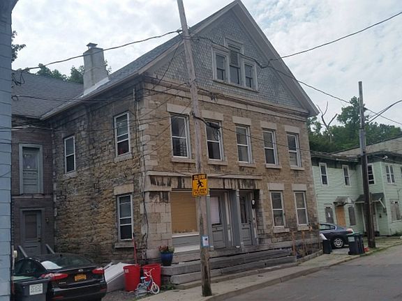 HISTORIC BUILDING IN DOWNTOWN CANAJOHARIE HAS 2 FEET THICK STONE CONSTRUCTION, CONSISTING OF TWO SIDE BY SIDE RENTAL UNITS. EACH UNIT HAS LR, DR, KITCHEN, FOYER WITH OPEN STAIRS, 4 BR's AND BATH. WOOD FLOORS AND BUILT IN CABINETS. EACH UNIT HAS AN ENCLOSED PORCH WHICH OVERLOOKS THE CREEK. LARGE WALK UP ATTIC IS 10 FEET HIGH AT PEAK. FULL CELLAR. THE TENANTS PAY THEIR OWN UTILITIES. ONE SIDE HAS HOT WATER RADIATORS AND THE OTHER SIDE IS HOT AIR.