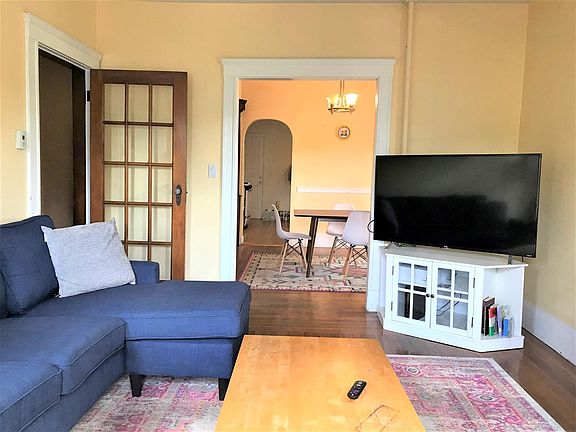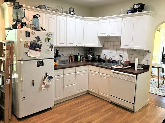 Spacious 4+ bedroom 2 bathroom apartment in Davis Square. Two-level apartment on the 2nd and 3rd floors, featuring a living room, dining room, a modern eat-in kitchen with dishwasher, disposal, and microwave. Hardwood floors throughout, front and back porch, free laundry, and 1 off parking spot is available. Great location is about 5 minutes to Davis Square and the red line. (Reference #124120) Half broker fee.