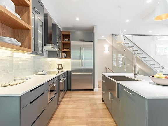 - Kit Dscrp: Main Level, Flooring - Hardwood, Countertops - Stone/Granite/Solid, Deck - Exterior, Breakfast Bar / Nook, Kitchen Island, Stainless Steel Appliances, Open Floor Plan, Recessed Lighting, Exterior Access, Lighting - Overhead, Lighting - Pendant