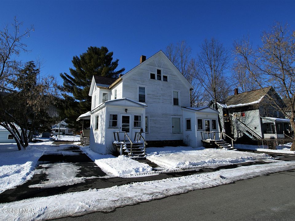 Income property with two spacious three bedroom units. Both sides have side porches off street parking and separate utilities. 13 Washington has enclosed porch, living room, dining room, big kitchen w/laundry downstairs and 3 bedrooms and bath upstairs. 15 Washington has enclosed porch, living room, dining room, big kitchen w/laundry downstairs and three bedrooms and bath upstairs. Units are currently vacant and owner states previous rents where $900 each 3 bedroom unit and 300 for efficiency. Building has possible third unit being a one room efficiency rental in need of remodeling, current use storage.