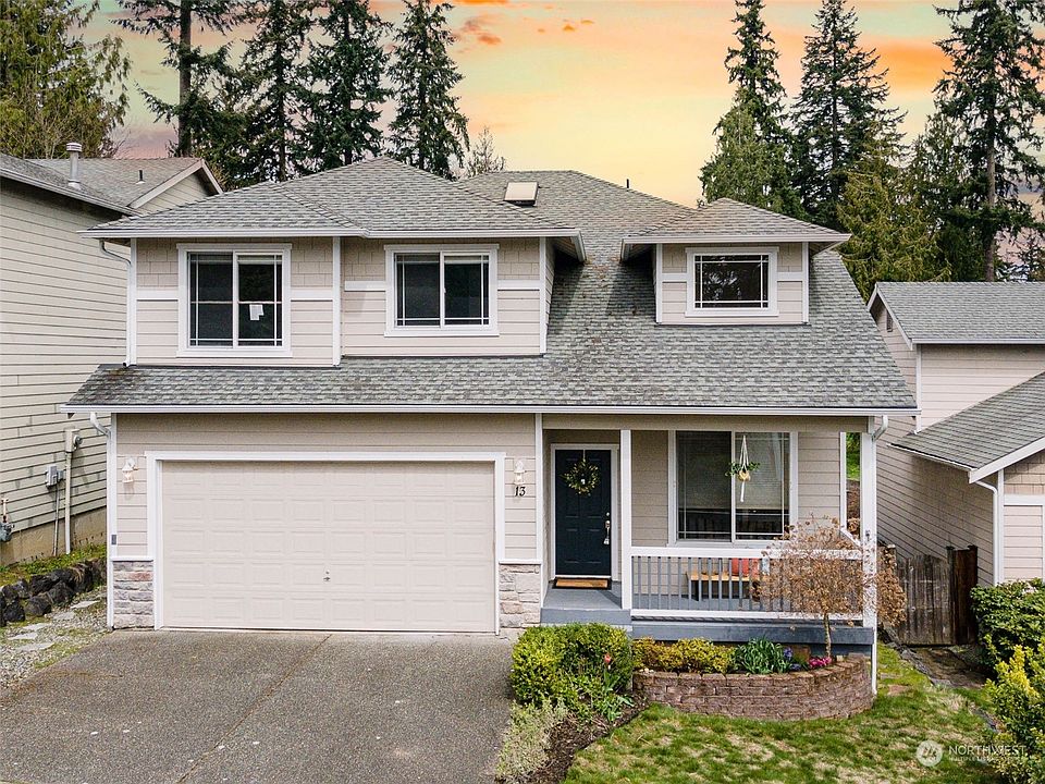 The inviting, bright and tall entry of this home leads to the formal living and dining space. Open great room and kitchen concept in back of the home with access to the beautifully landscaped back yard with deck and additional patio. The second floor hosts open loft that works great for the home office. Double door entry into the large primary bedroom and 5 piece bathroom. 3 additional bedrooms with generously sized guest bathroom complete the second floor. Easy access to HWYs and minutes to Mill Creek Town Center!
