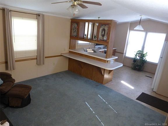 Beautiful Home with Cathedral Ceilings. Spacious feel in this 2 bedroom home in Beacon Falls. Eat in kitchen with plenty of cabinets and snack bar counter surround. Bright and open living room with ceiling fan. Updated bathroom with skylight and new Allure flooring. Master bedroom has large double closet and ceiling fan. Second bedroom with full closet would also be perfect for office, guest room or hobby room. Two parking spots in front of home. Newer mechanicals include roof and hot water heater. Great location near Rt. 8 and Naugatuck River. Beacon Falls is a small town with it's own train station offering canoeing, kayaking and nearby parks and hiking trails. Shopping conveniently located within 3 miles. Lot fee includes water, trash removal, road and septic maintenance. No dogs but in-door cats allowed. All potential buyers to be approved by the Park Management. Application and fee apply.