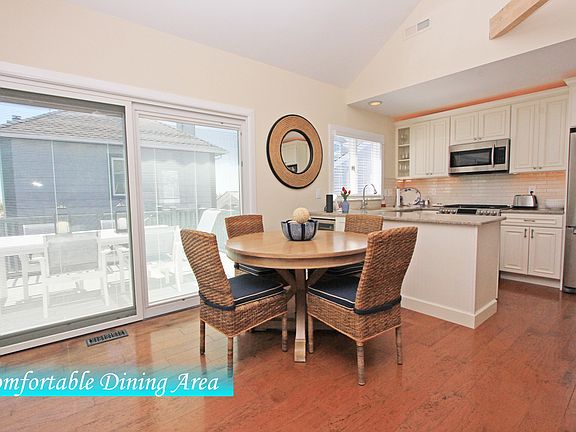 This outstanding two bedroom, two and a half bath townhome is situated only one house from the beach (approximately 87 feet away) and boasts ocean views from the living and dining areas! The second-floor great room features dramatic vaulted ceilings with wood beams, hardwood flooring, Velux opening skylights, Pella triple-pane sliders and elegant shore décor throughout. Step out and take in fresh summer breezes and amazing water views from the spacious wrap-around deck that also provides a comfortable shade via the awning. This townhome is ideally located only steps away from that beach and a short walk to the restaurants and Stone Harbor’s shopping district! You don’t want to miss this great opportunity. Call today for a private showing!